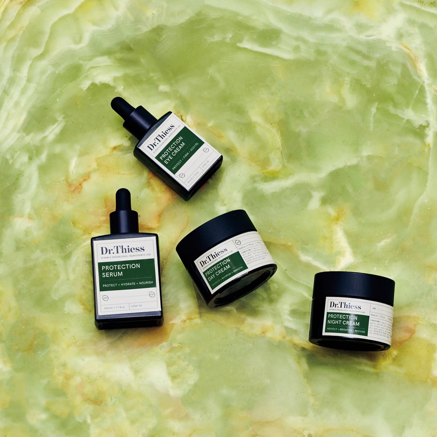 The DR.THIESS Protection skincare collection combines natural and scientifically engineered ingredients to support and protect skin health. For example, hyaluronic acid attracts water molecules to the skin to hydrate, while shea butter forms an organic barrier against moisture loss.